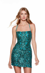 Sequin Embellished Homecoming Dress with Halter Straps by Alyce