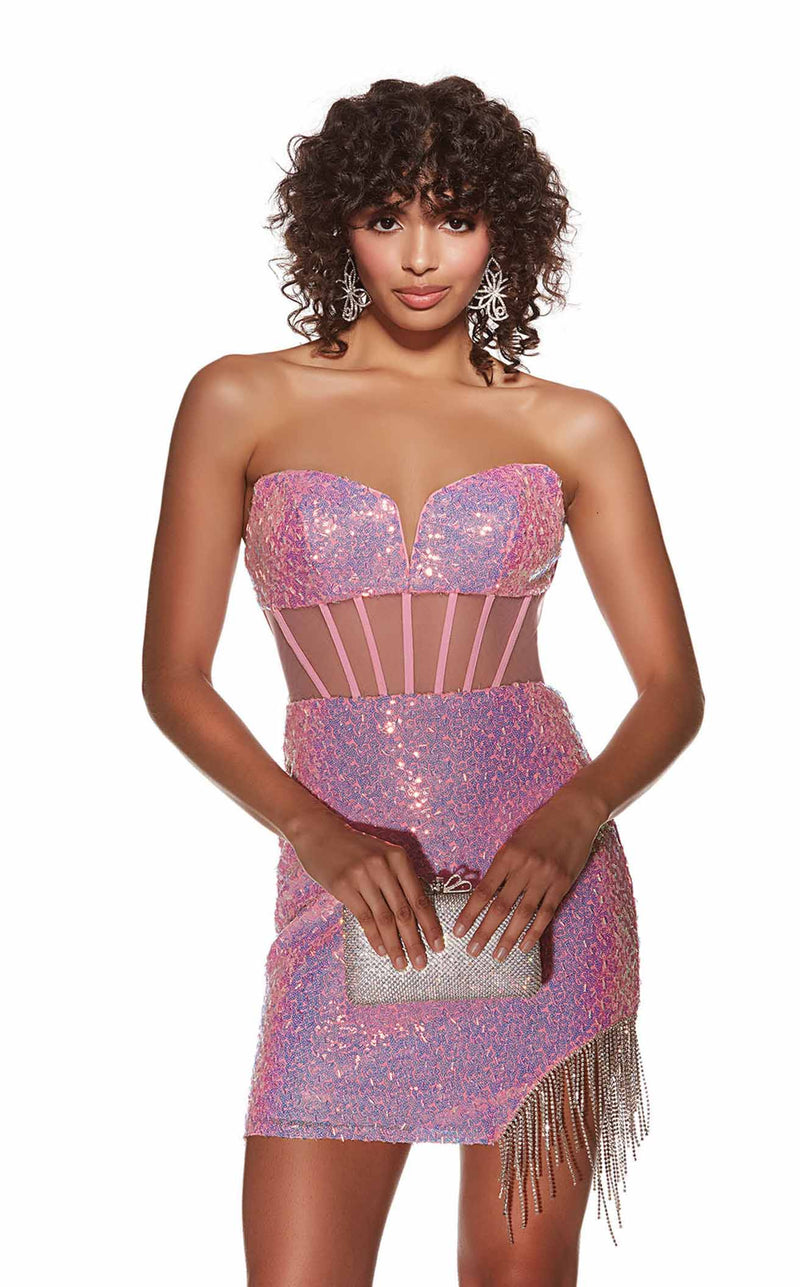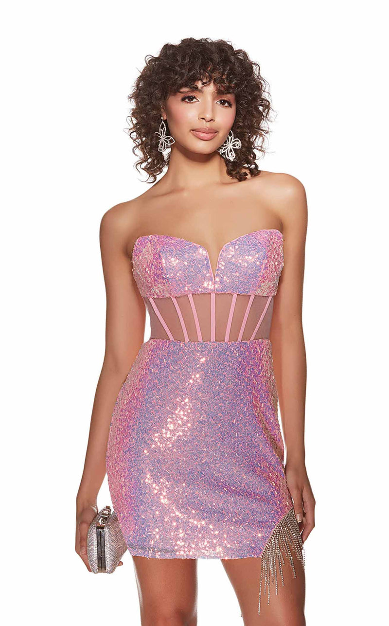 Dazzling Strapless V-neckline Short Dress by Alyce