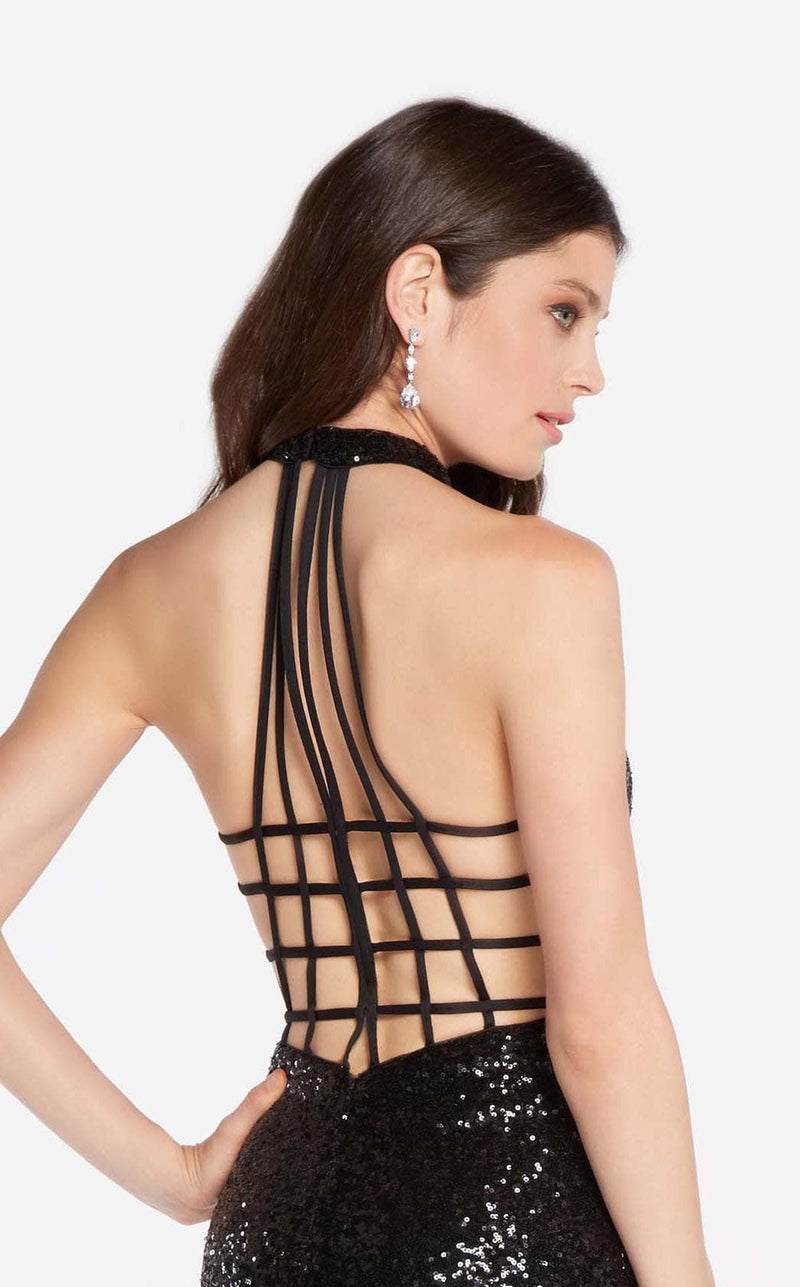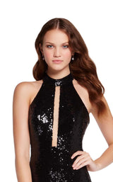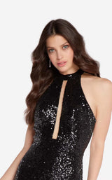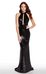 You`re magnificent in a glam gown from Alyce Paris. The collared neckline reveals a keyhole cutout for a scintillating effect. Magnificent sequins are glossy down the entire length. The mermaid skirt gently flares over your legs to a complete hemline with a sweeping train that dances around your feet.