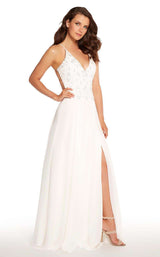 Your look is timeless in a classy gown from Alyce Paris. Tapered straps part into a V-neck neckline. Detailed embellishments sizzle on the bodice. The slinky skirt is full length and flares to your feet with a dramatic high leg slit. This angelic gown is impeccable for all occasions.