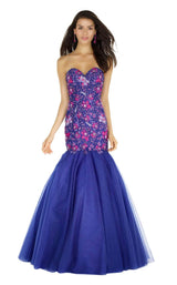 Go behind the scenes in a coveted gown from Alyce Paris. The strapless sweetheart neckline reveals your arms and shoulders. A decorative posy print blossoms over the fitted bodice with crystallized accents. The mermaid skirt is gently ruched with a sheer overlay and a wide flare to the floor.