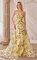 Look fabulous at your evening party with this head-turning strapless sheath dress by Andrea and Leo A0770. Featuring a column skirt with overlay, this edgy party dress has a sweetheart neckline supported by slender spaghetti straps. This floral lace appliqued gown flows to the full length and ends in a dramatic sweep train, adding to its stunning look.