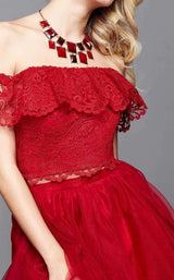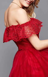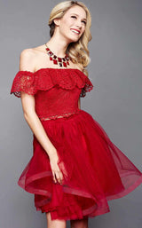 Fashionable and sweet, this trendy cocktail dress from Clarisse 3314 is sure to make them stare. The fabulous bodice features off the shoulder straps and a flirty scalloped ruffle for a chic style. Bare at the midriff, this amazing two-piece ensemble drapes to the dreamy mid-thigh hem in layer after layer of elegant fluttering waves.