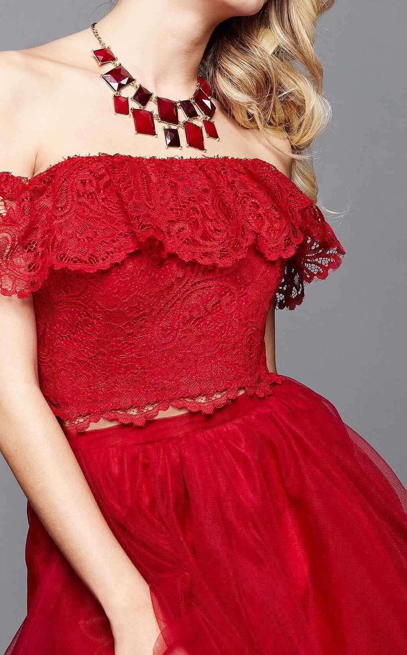Fluttering Lace Two-Piece Cocktail Dress by Clarisse