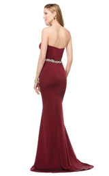 Let your dreams come true in this elegant evening dress from Colors. The strapless bodice has a classic straight neckline and is cinched at the waist with a dazzling crystal embellished belt. Designed to create curves, this captivating black tie ensemble glides to the full-length fit and flare hem in chic shimmering waves.