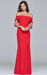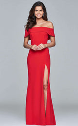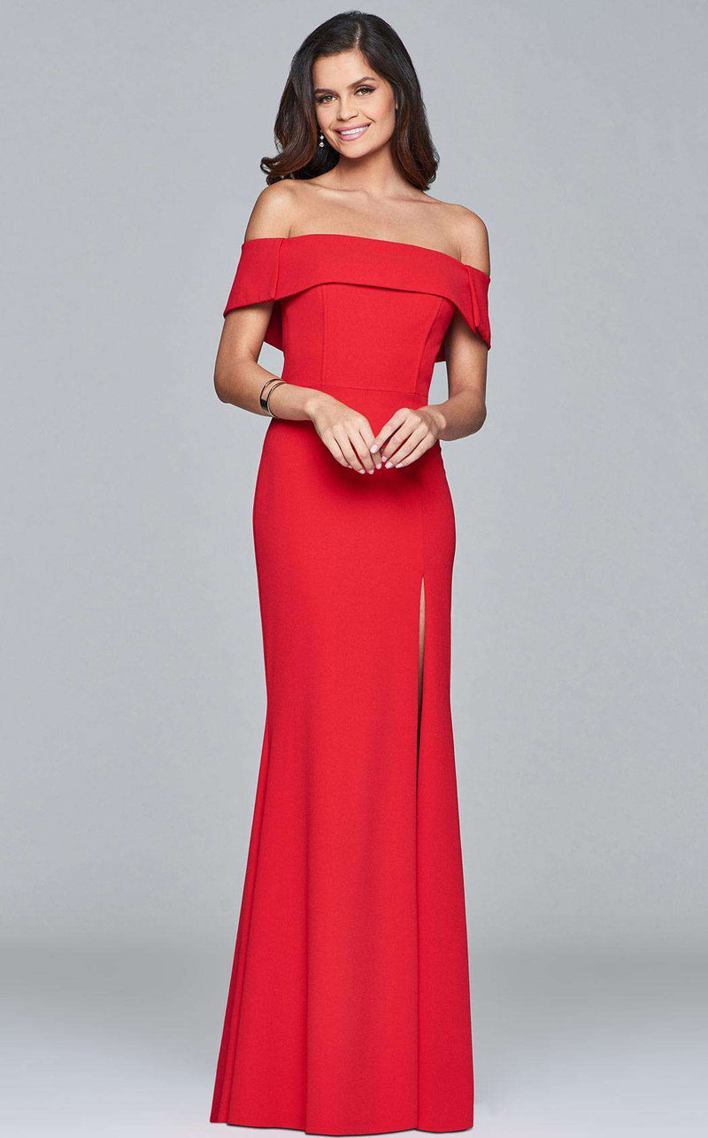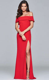 Caliente off-the-shoulder evening gown with simmering split by Faviana