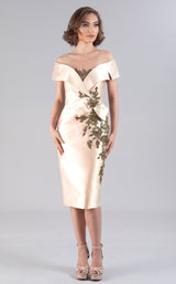 Look absolutely pretty in Feriani 20516 Dress. This beautiful piece features a column silhouette and glittering accents. The short sleeve bodice has a other neckline and a natural waist.