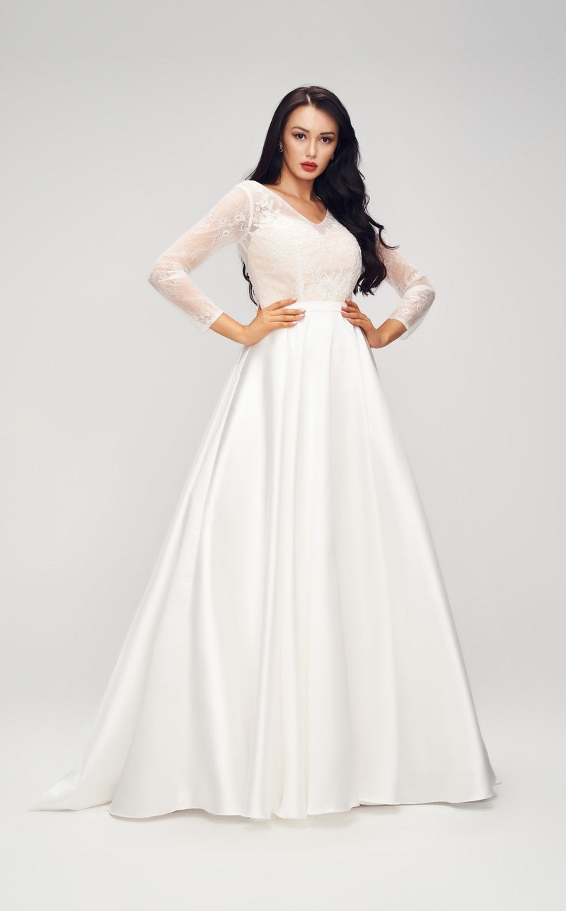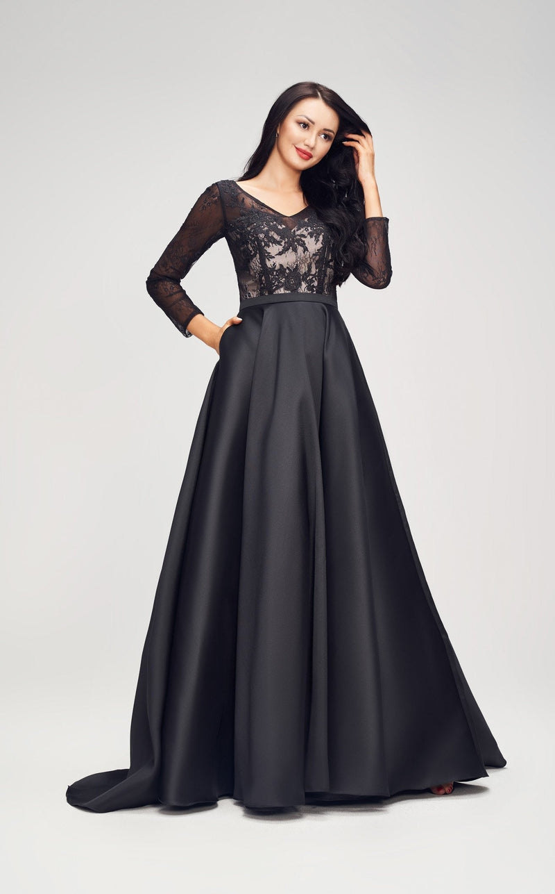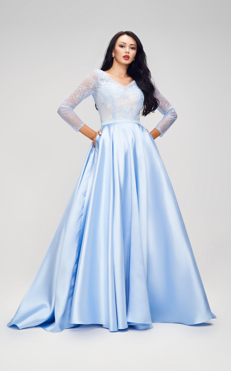 Look absolutely marvelous in Jadore J17012 Dress. This beautiful piece features a a-line silhouette and lace & embroidery. The long sleeve bodice has a v-neck neckline and a natural waist.