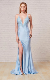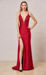 Look absolutely lovely in Jadore J18009 Dress. This lovely piece features a column silhouette and lace & embroidery. The sleeveless bodice has a v-neck neckline and a natural waist.