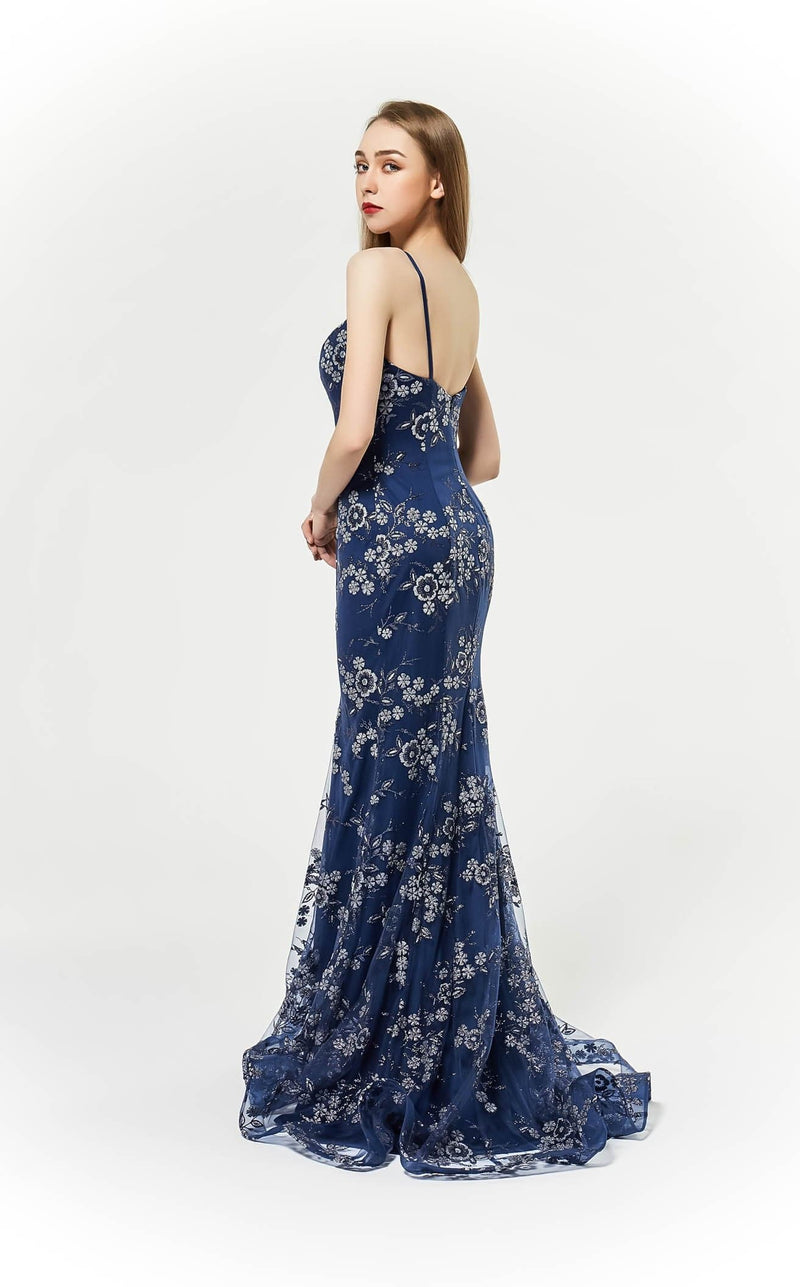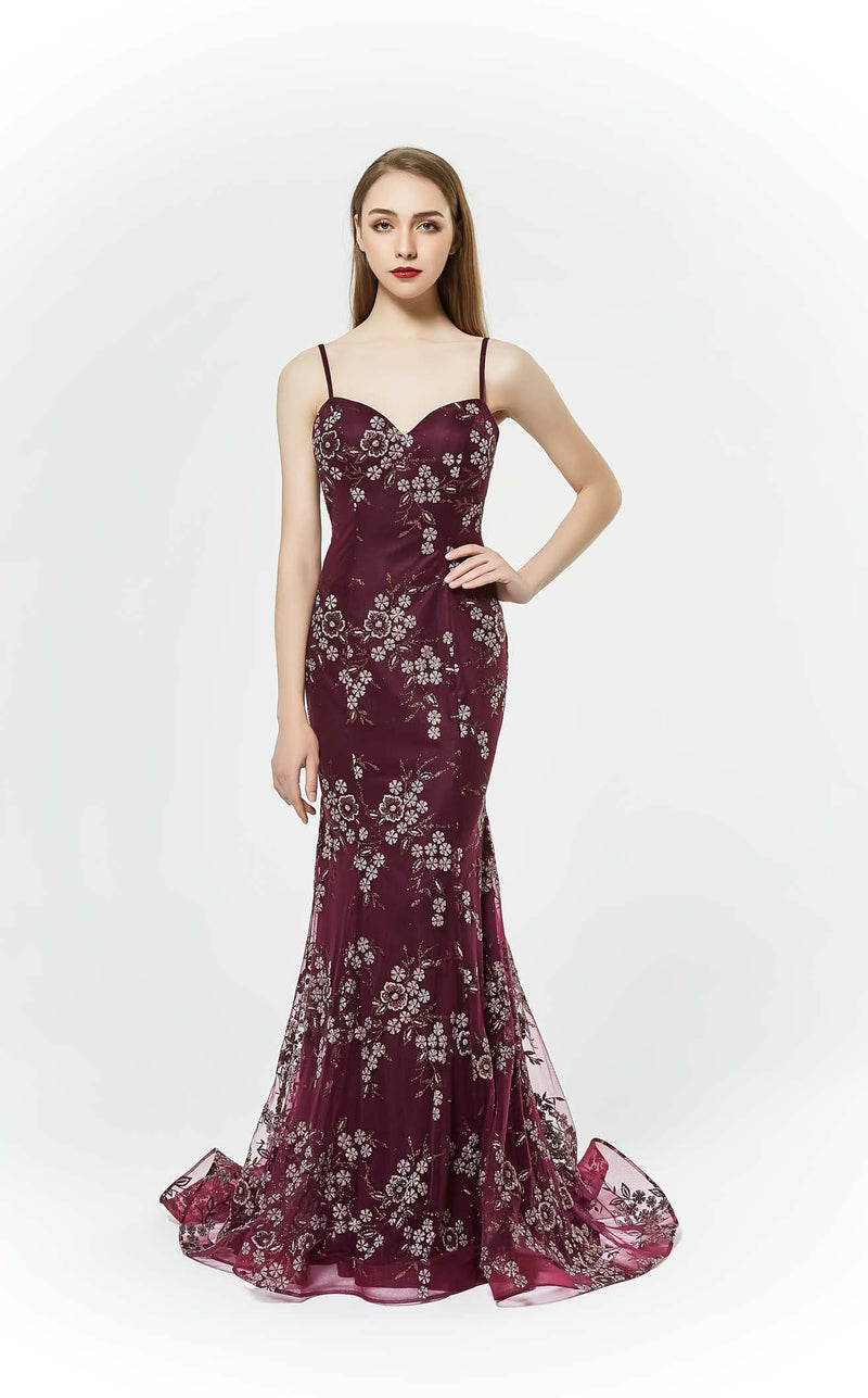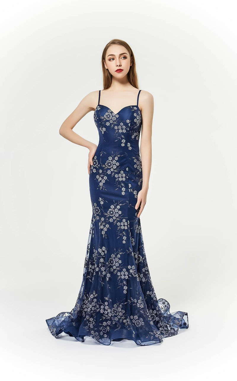 Want to make your evening date memorable? Try this exceptionally gorgeous dress by Jadore. The floral embellishments all over give a gleaming charm to this outfit. This dress features a sweetheart neckline with spaghetti straps adding charm to your personality. The dress has a trumpet silhouette and comes in full length. Adorn this elegant dress and feel beautiful and confident again.
