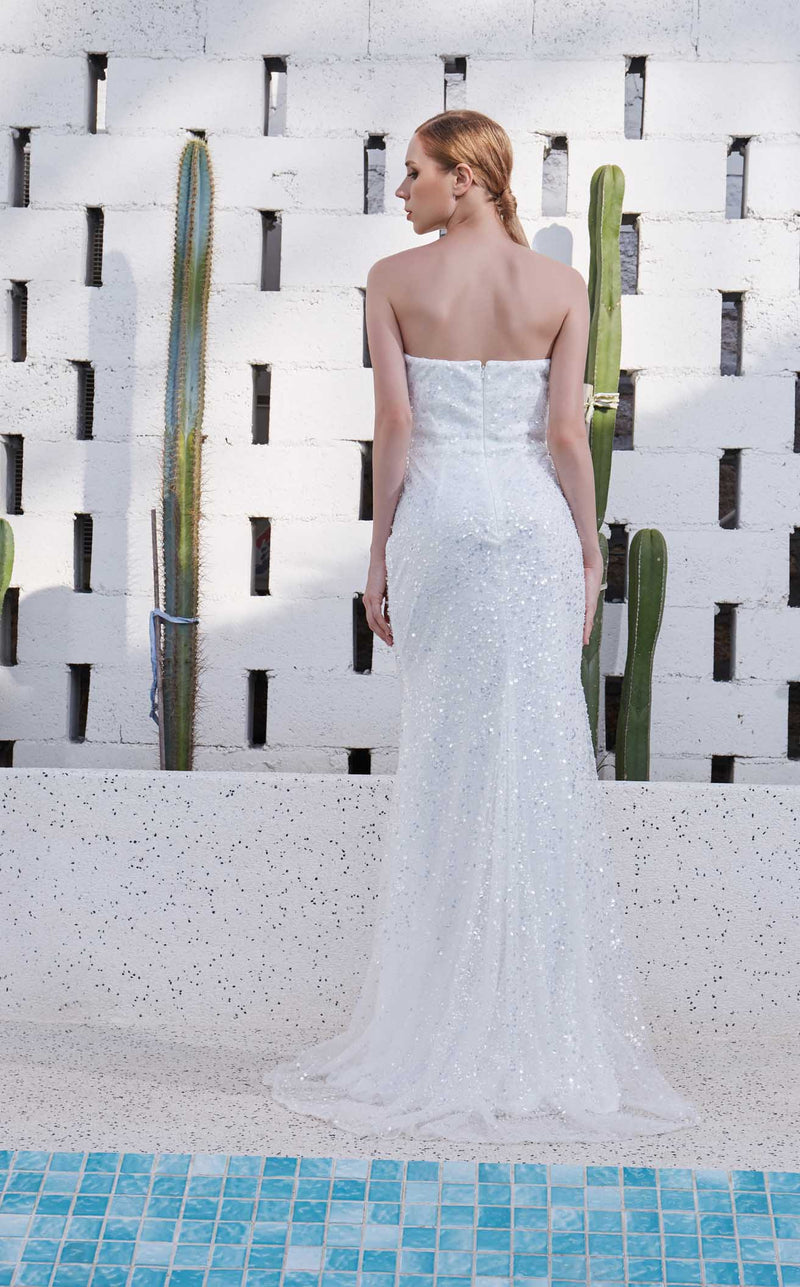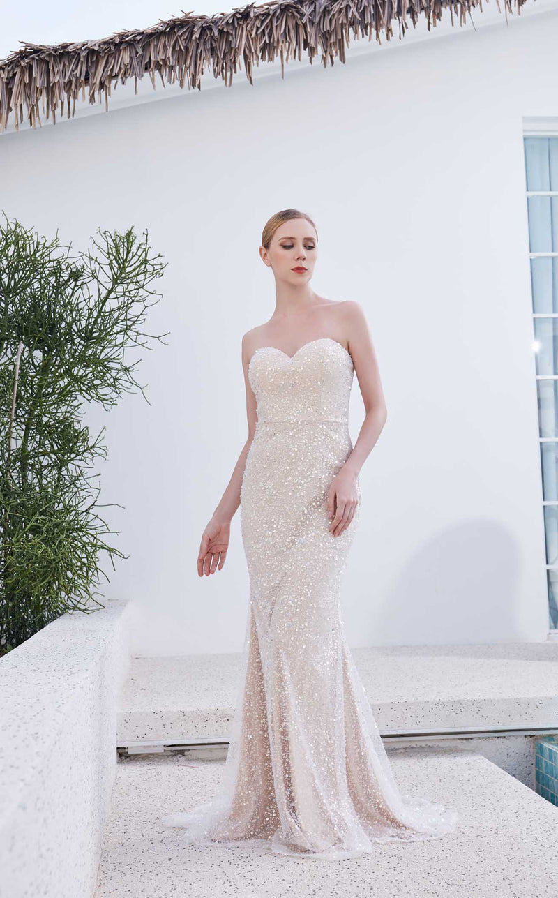 Look absolutely sublime in Jadore JM106 Dress. This beautiful piece features a column silhouette and glittering accents. The sleeveless bodice has a strapless neckline and a natural waist.