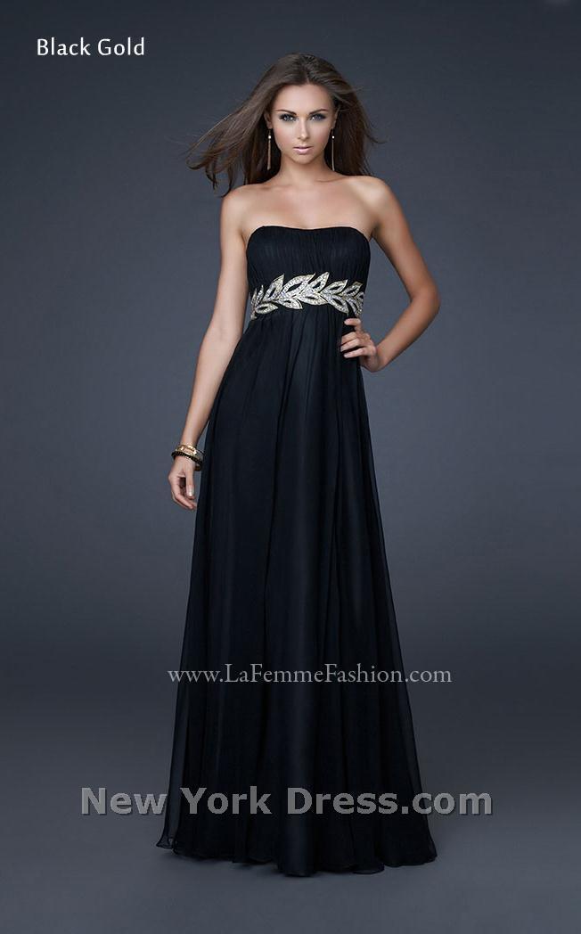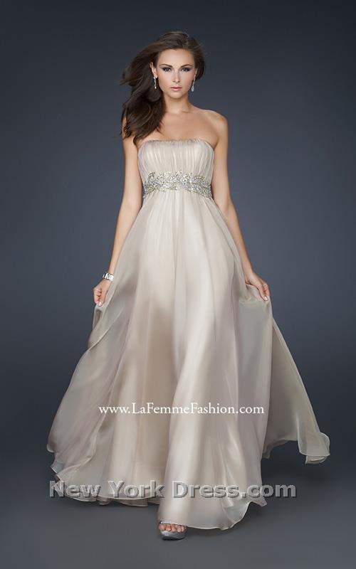 Look Dazzling in this La Femme 15986 Dress by La Femme. This dress features A-Line, blackfriday19, Empire, eoy2019, Glittering Accents, july4, Long, New, No, Prom Dresses, Red Carpet Dresses, Sleeveless, Strapless