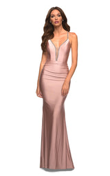 It’s always good to wear a dress as beautiful as the one from La Femme 30446. The dress is a magnificent creation, especially the illusion plunging neckline that has an embellished border. The satin dress also has a fitted sheath silhouette with very faint pleats at the bottom of the dress.