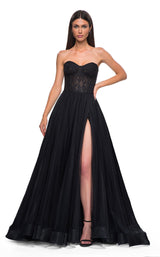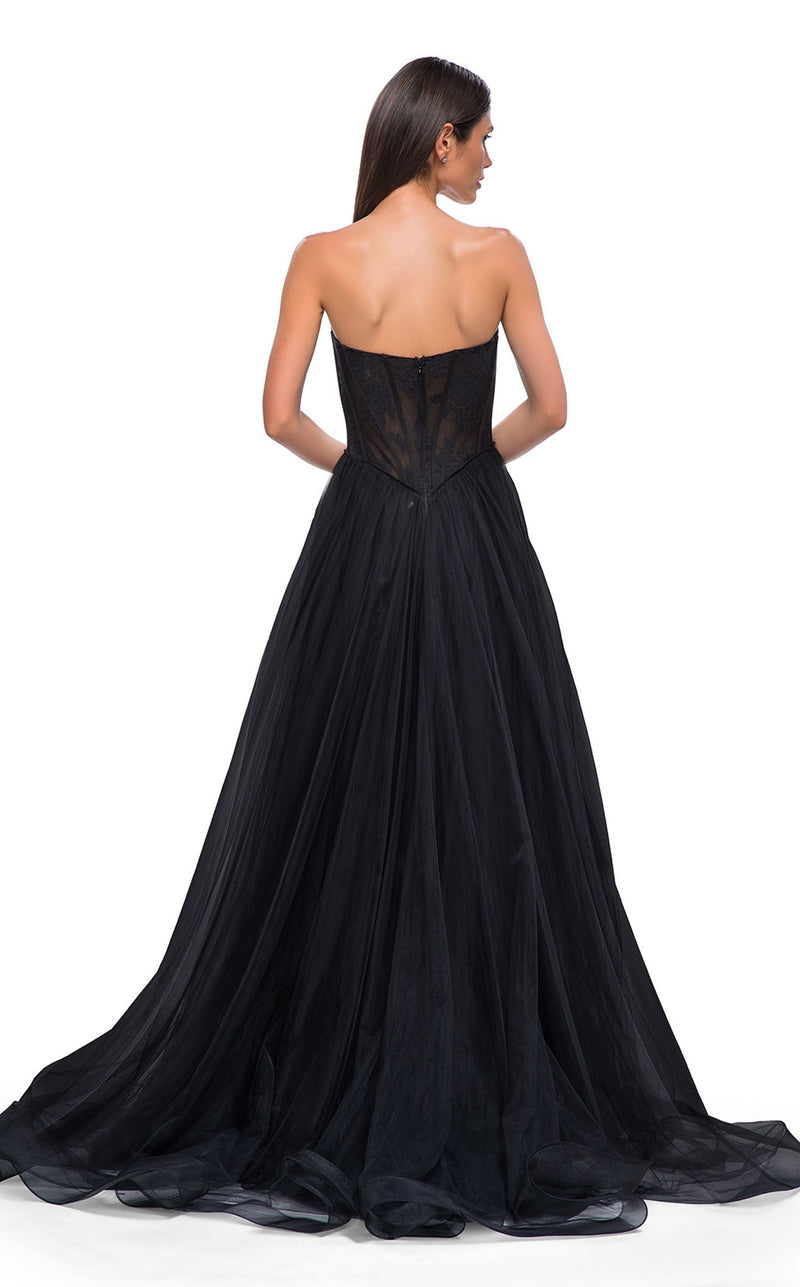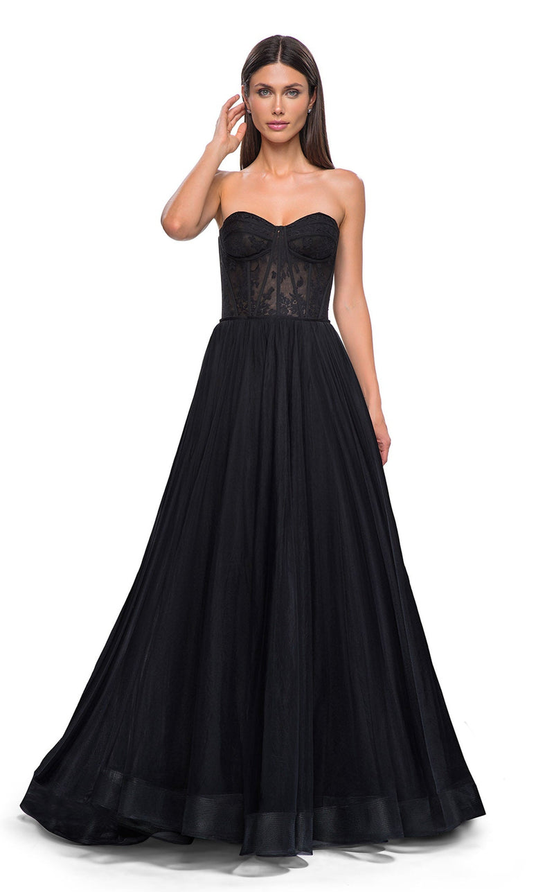 Luxe Strapless Neckline Lace Corset A-line Dress by La Femme