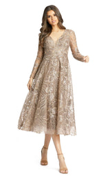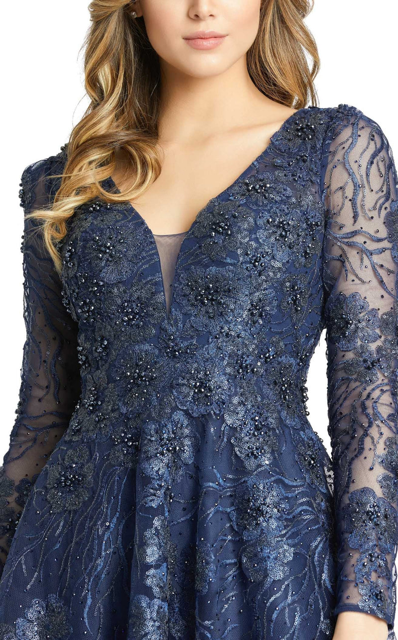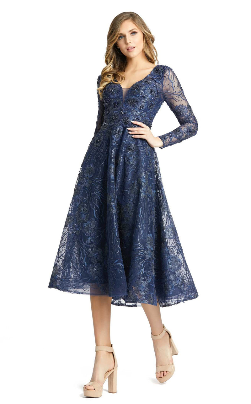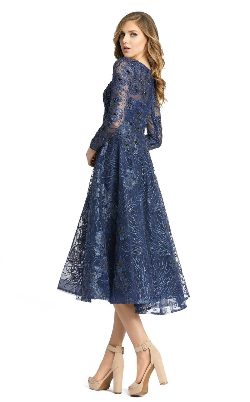 Investing in this wonderful dress designed by Mac Duggal 20286 is worth it. The plunging sweetheart neckline comes with an illusion neckline. The illusion sleeves have lace details. The dress has a midi-length. The beautiful dress has multiple layers which form a beautiful and voluminous A-line skirt. Decorated with beautiful patterns, the dress looks expensive.