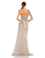 The One Shoulder dress by Mac Duggal 20401 is a statement piece that will add the perfect amount of style to your formal wardrobe. Featuring a gorgeous asymmetrical neckline, one side is adorned with full sleeves and embroidered lace. Made from a soft and stretchy material, it is comfortable and easy to wear. With its fit &amp flare silhouette, soft touch material, and comfortable stretch fit, this piece will make you feel confident and ready to conquer the world.