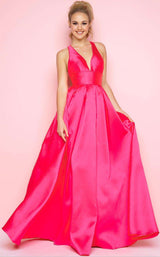 Look fabulous for your next formal party wearing this evening gown by Mac Duggal 25534 Flash. This sleeveless dress has a V-neckline and fitted bodice. The nipped waist moves into a full skirt with serious movement and the look finishes with a full length hem.