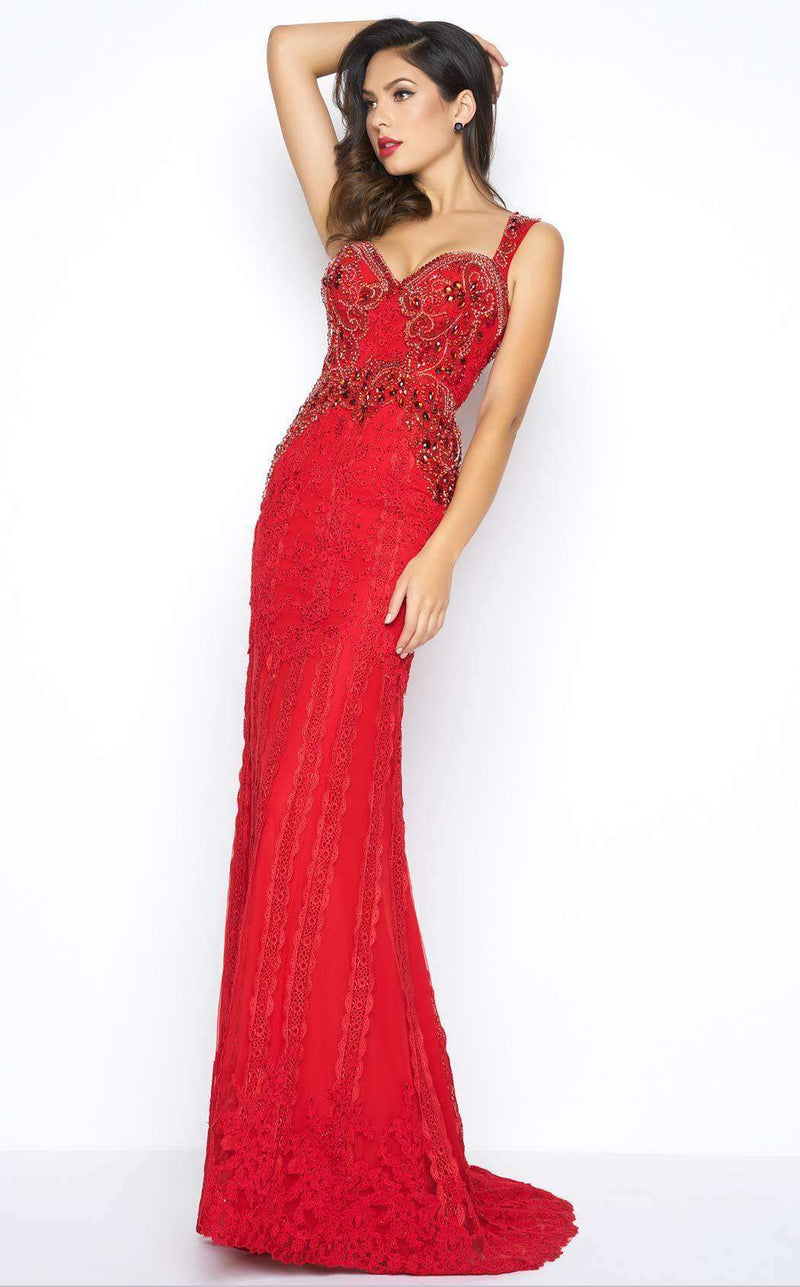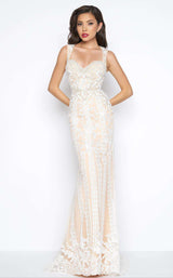 Romantic and chic, this floor-length Mac Duggal 62707 column gown is a sight to behold! You`ll delight in its ethereal floor-length skirt, which incorporates illusion styling, shimmering beadwork and eye-catching appliques to produce a dreamy ambiance. Meanwhile, ornate beadwork jazzes up the fitted sweetheart bodice and broad shoulder straps.