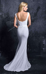 Radiant and timeless, this classy evening dress from Nina Canacci 7354 is a sophisticated look for any black tie event. The sultry bodice has sheer slight cap sleeves and a plunging neckline with inset illusion details for modesty. This ravishing ensemble is wrapped in glamorous floral lace and slides to the full-length fishtail silhouette hem with pizzazz and flair.