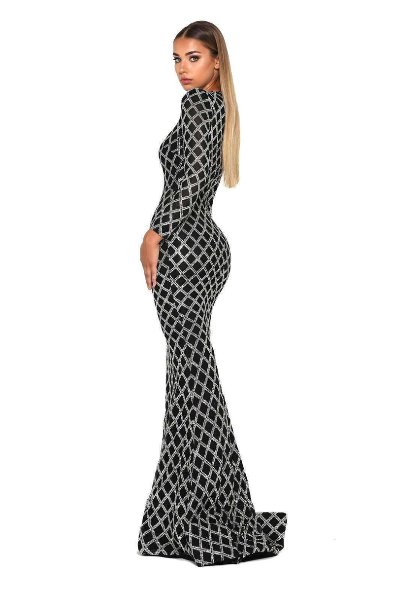 Radiant Diamond Sleeved Gown by Portia and Scarlett