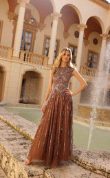 This 13118 Primavera Couture dress is the perfect fusion of femininity and fun. From the elegant boat neckline to the embroidered bodice, this number oozes old Hollywood glamor. But the party starts at the waist, where a full, sequined A-line skirt flares out in a playful celebration of movement and style. Slip it on and feel the joy of dancing the night away. Fashion should put a smile on your face, and this number certainly delivers.