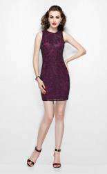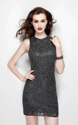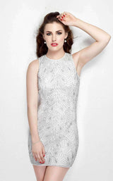 Look fantastic for the party in this Primavera cocktail dress. This sleeveless dress has a sheath-style silhouette. Fine shimmering detail darts throughout the dress for a festive look. The skirt is straight and finishes with a mini hemline.