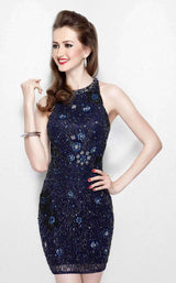 Look amazing in this Primavera cocktail dress. This dress is sleeveless with fine sequins and beading throughout the fitted shape. The straight skirt finishes with a mini hem. It’s a sultry look with a glamorous edge, perfect for a special event.