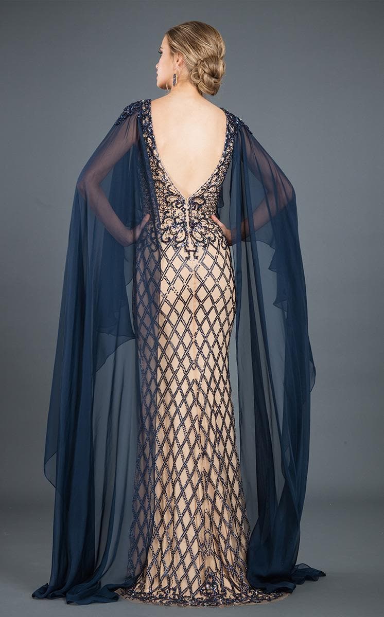 Beaded and Sheer Cape Evening Gown by Rachel Allan Couture