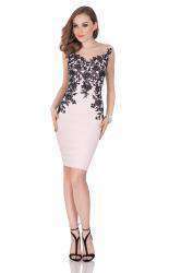 Get decked out for your next formal occasion wearing this cocktail dress from Terani 1623C1395. This dress has a wide neckline. Contras flowers create a striking look at the fitted bodice. The skirt is smooth with a straight fit and finishes with a modest hem. It’s a go-to look for any special event.